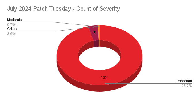 Microsoft aborda 138 CVE en su lanzamiento del martes de parches de julio de 2024, con cinco vulnerabilidades críticas y tres vulnerabilidades de día cero, dos de las cuales fueron explotadas en la naturaleza.